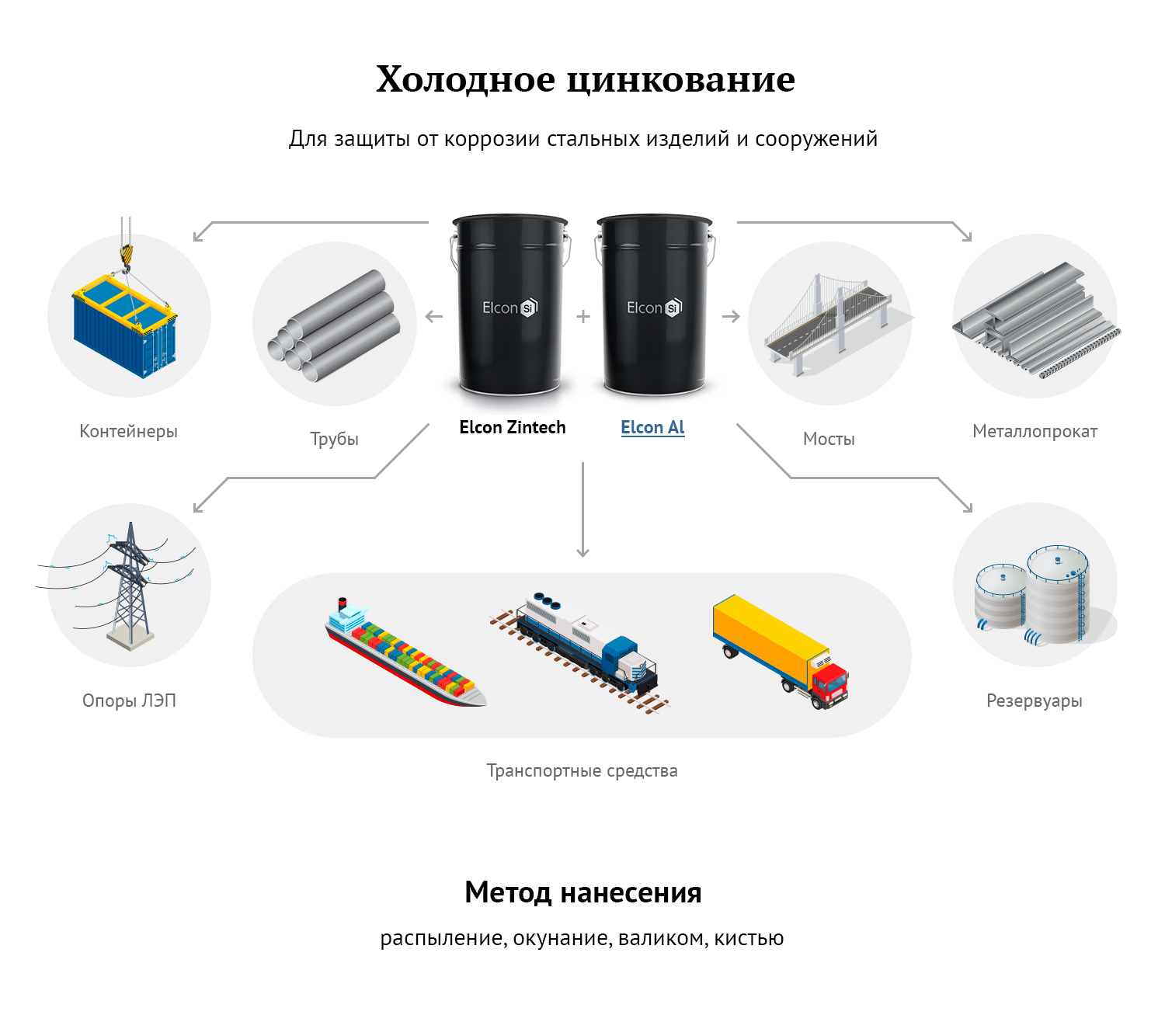 Состав для холодного цинкования Elcon Zintech применяется для эффективной протекторной защиты черных металлов. Используется как самостоятельное покрытие, а также как противокоррозионная грунтовка под различные декоративные и защитные покрытия.